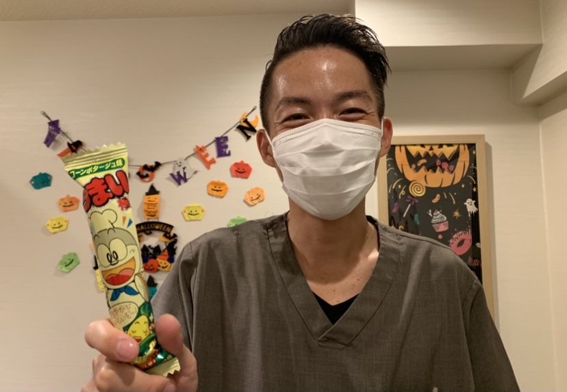 うまい棒を手に取りご満悦の様子です。