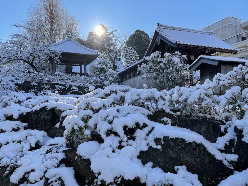 横浜の積雪とお寺の風景です。