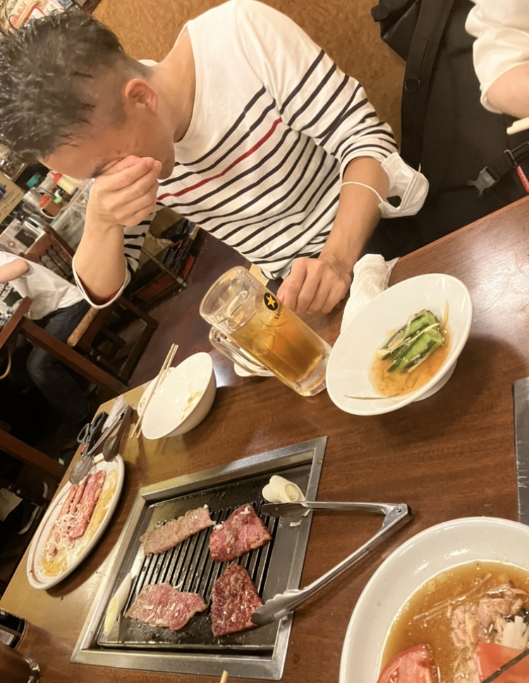 2022.06.17 / コラム 反町駅近くにある「東海苑」にて。 みんなで美味しく楽しい時間です。 ちなみに受け付けの鈴木さんはユッケが大好物とのことで、嬉しそうに「みなぎるよね」とのことです。 なぜユッケが好きなのですかと聞いたところ「焼かなくても食べれるところだよね」とのことです。