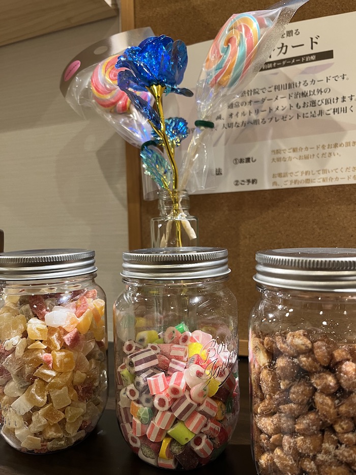 待合室のお茶請けに新たな仲間が入りました!スタッフが一生懸命折った折り紙のお皿でぜひご賞味くださいね。