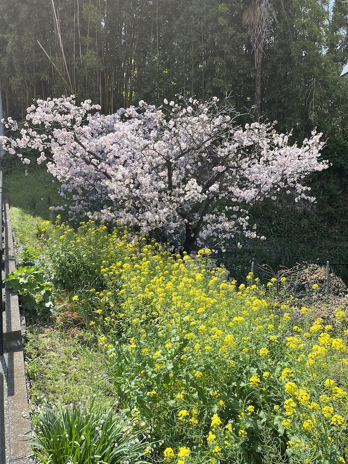 三ツ沢に桜と菜の花の隠れスポットがあります。春になってここを通るとたくさんの幸せが溢れています。どこかわかりますか?