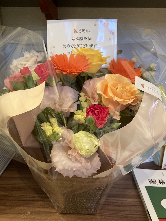 千葉にいる友人から五周年のお祝いをいただきました!!素敵な花束です!!いつも気にかけていただいて本当に感謝です!!