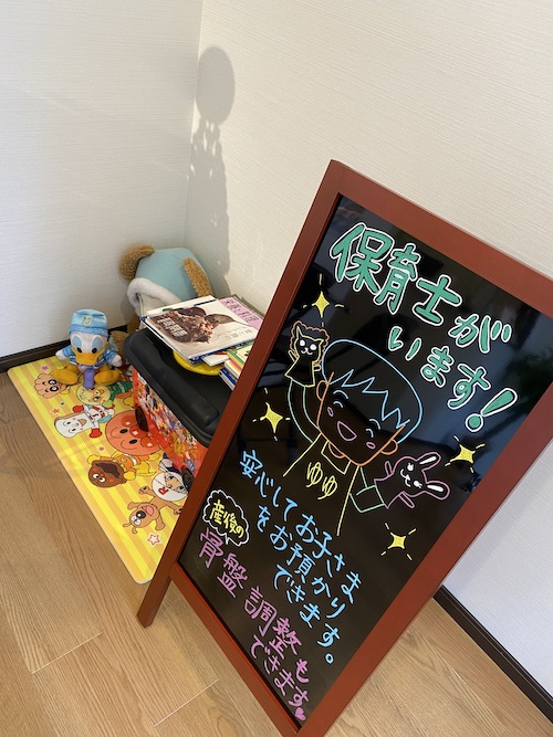 ゆゆには14年間保育園にて栄養管理と保育の経験を積んだ保育士さんがいます。安心してお子様をお預けして施術を受けることができます!