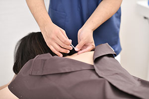 治療には髪の毛ほどの極細の鍼(はり)を使っていますので、ほぼ痛みは感じず、安心です。また、心地よい響きを伴うやり方もあります。